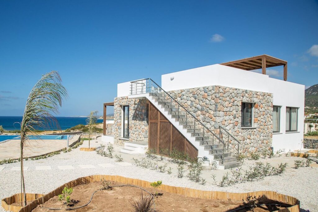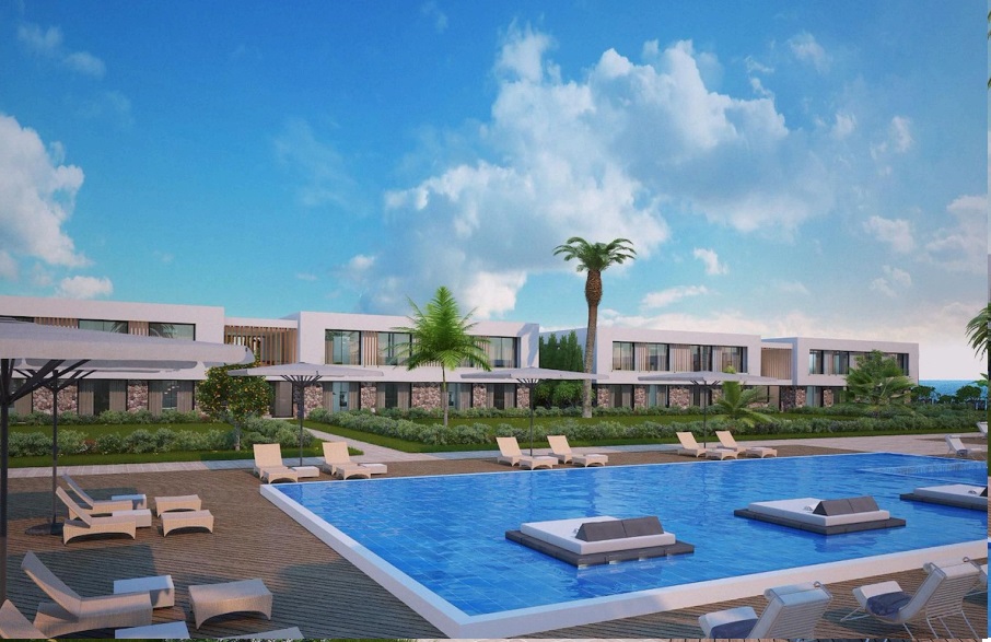 Der Komplex liegt nur etwa 100 Meter vom Meer entfernt, in unmittelbarer Nähe zum eigenen gepflegten Strand mit einer natürlichen, blauen Lagune, ideal zum Schwimmen und Schnorcheln. Die malerische Lage am Fuße des Kyrenia-Gebirges bietet außergewöhnliche landschaftliche Reize, Ruhe und ein Gefühl von Privatsphäre.
