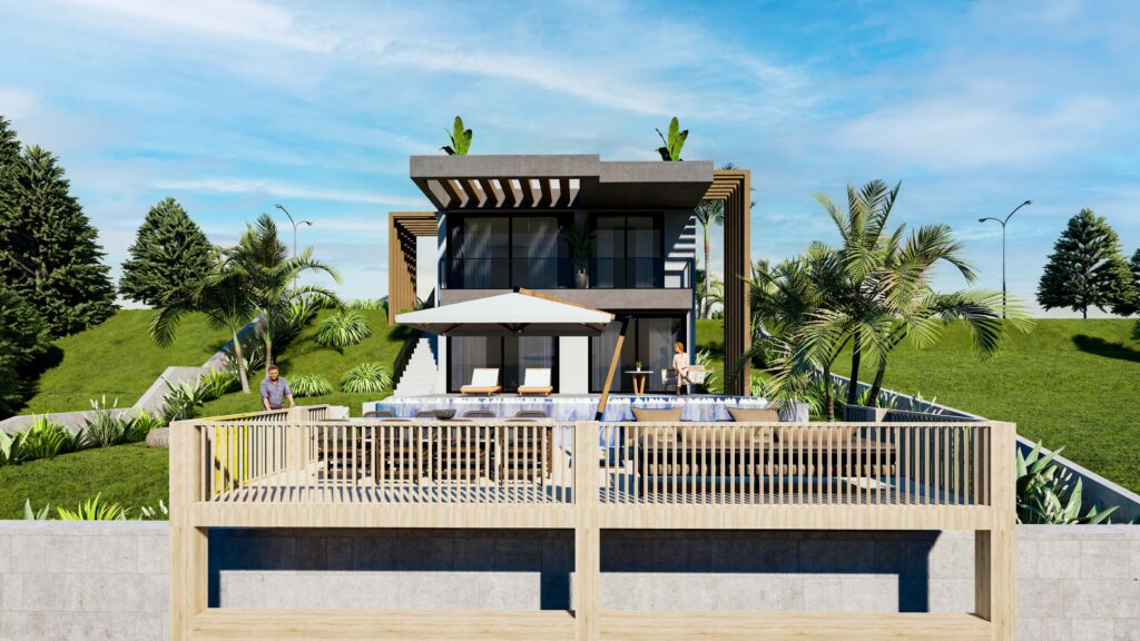 Der Komplex bietet moderne Apartments und Villen, die auf Komfort und natürliches Licht ausgelegt sind. Balkone und Terrassen ermöglichen Panoramablicke auf das Meer, die Berge und die umliegende Natur und unterstreichen das einzigartige Flair dieses Ortes.