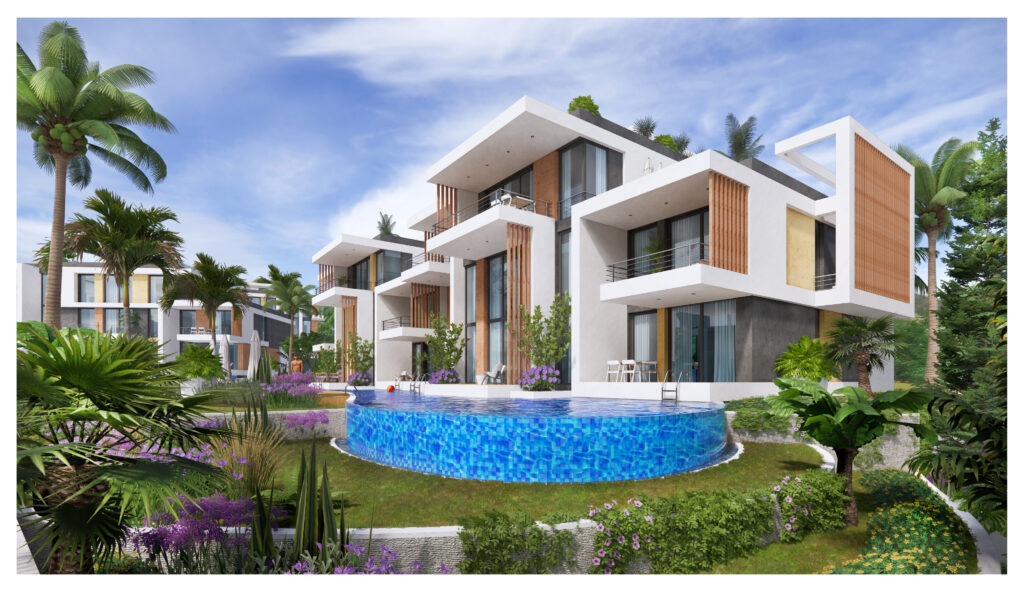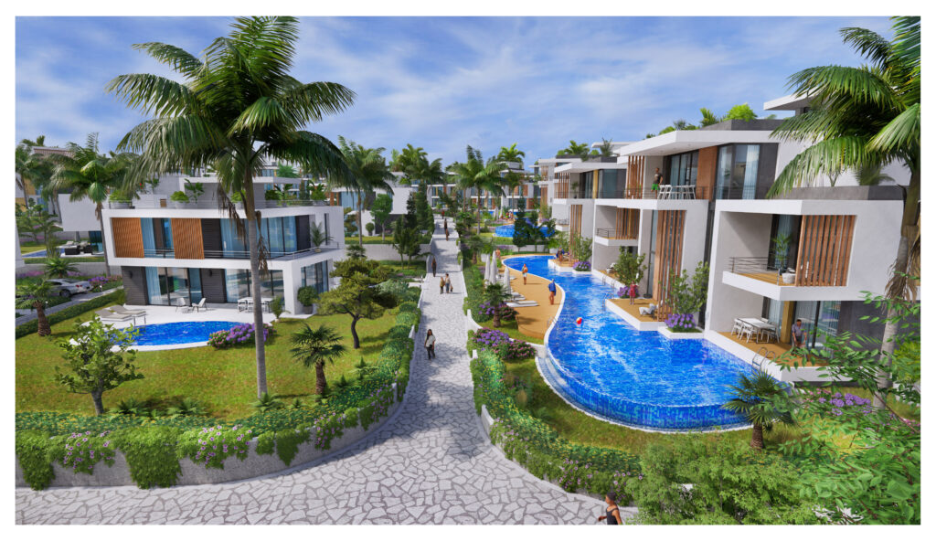 Panaroma Homes ist eine moderne Wohnanlage in einer ruhigen Lage von Tatlısu, umgeben von mediterraner Landschaft. Das Projekt wurde mit Blick auf den Komfort der zukünftigen Bewohner geplant, von der Qualität der verwendeten Materialien bis hin zur durchdachten Gestaltung der Grünflächen.